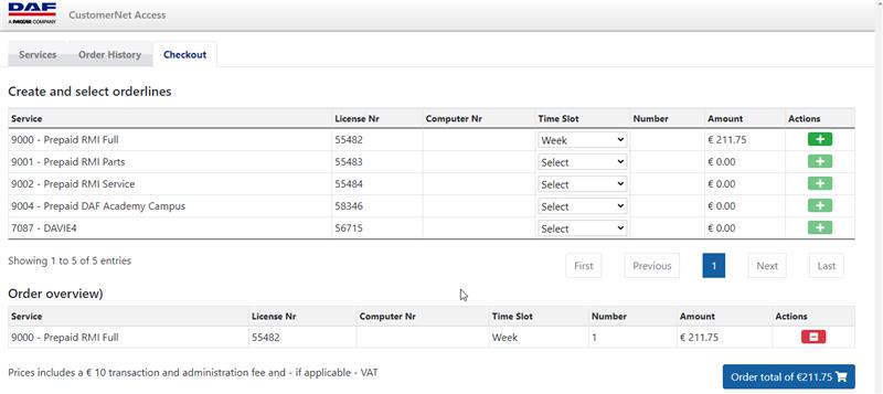 - Select the Service to order by clicking the shopping cart icon behind it.