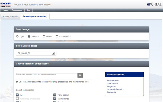 You must be registered and logged in to ePortal for accessing the various information types of the repair and maintenance information.